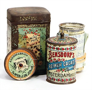 Konv. Puppenküchenteile, Kanne, Blech lithogr, Südseemotiv (wohl Kolonialzeit), 8 cm, Petroleumkanne, kl. Brotdose, 2 Schüsseln, kl. Platte mit Engelsmotiv, Engel 7,5 cm, für frühe Küche o. Kaufladen