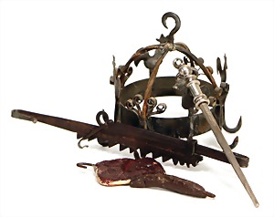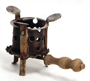 Puppenküchen-Ausschmückungsartikel, Kaminsäge, Kaminbesteck-Halter, geschmiedet, handgelötet, Durchm: 6,5 cm, für Rauchfangküche