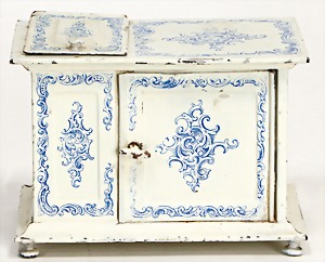 Puppenstuben-Eisschrank, Blech handlackiert, kl. altersbed. Lackfehler, ohne Zwischenboden im Schrank