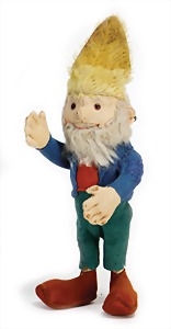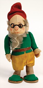 Zwerg, 24 cm, mit Knopf, lang gezogenes F, Orig.-Filzkleidung, Mohairmütze, alte Flickstelle am Filz des einen Arms, sonst ein paar Filzfehler