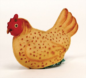 Nachkrieg, Katze, Eierwärmer, mit rotem Filzkleid, mit Knopf, Schild u. Fahne, Nr. 3177/15, sehr schöner unberührter Orig.-Zust., 15 cm