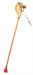 Steckenpferd, Vorkrieg, wohl 20er Jahre, 1,10 m, Filzkopf, Glasaugen ((etwas verkratzt), mit Knopf, lang gezogenes F, Orig.-Zust. Dachbodenfund, verschmutzt