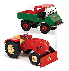2 Teile, Cockie, kompl., Nr. 3314, Schild an der Spitze verschlissen, Leo, kompl., Nr. 2335.1, 49 cm, ein wenig eingestaubt sonst guter bis sehr guter Zust.