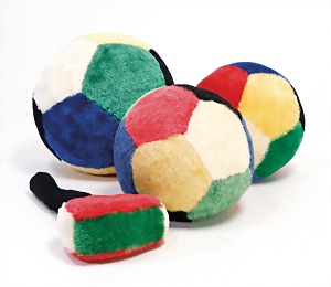 4-tlg., Nachkrieg, 3 Bälle, 2x Durchm. 17 cm, 1x Durchm. 20 cm, 1 Hammer, mit Fahne, ohne Knopf, gut