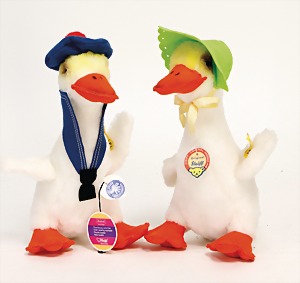2 Teile, Entenpaar, kompl., Nr. 4907/25, Nr. 4908/25, Mann mit Schild Dralon, Frau ohne Schild, sehr guter Zust.