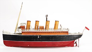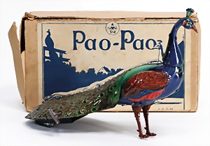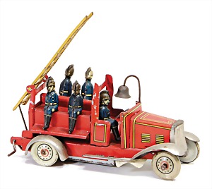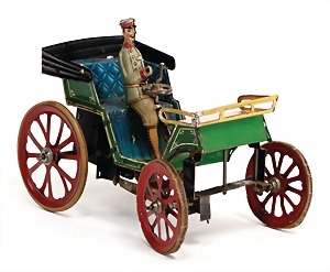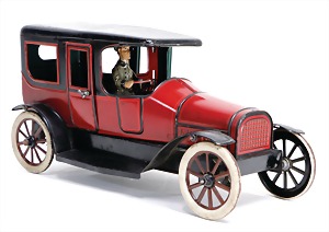 Automobil, 30er Jahre, Landaulet, 34 cm, Blech lithogr., mit Fahrerfigur, 2 Türen zum Öffnen, Uhrwerk intakt, leicht bespielt, kl. Lackfehler am Dach, guter Zust.