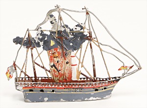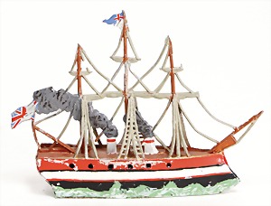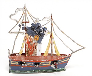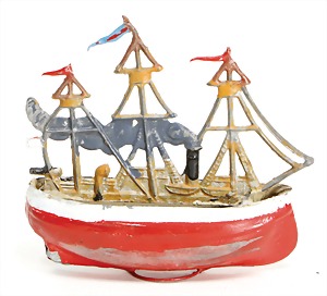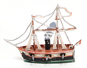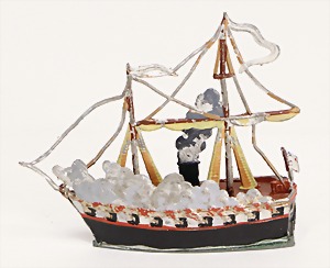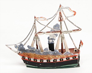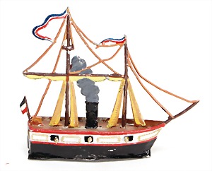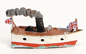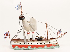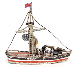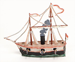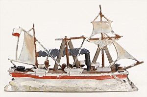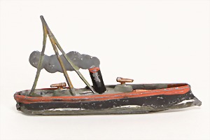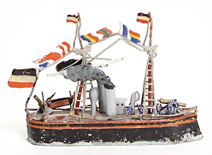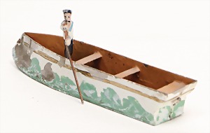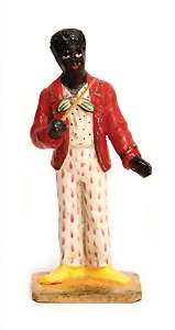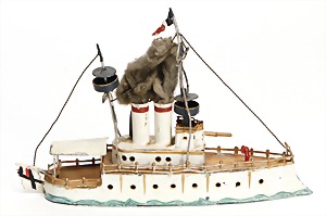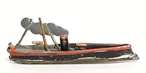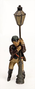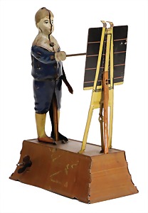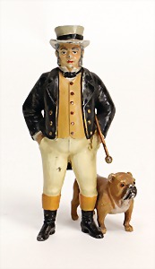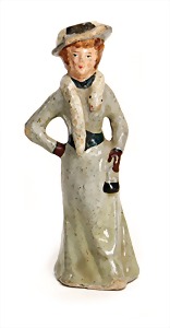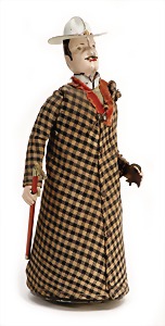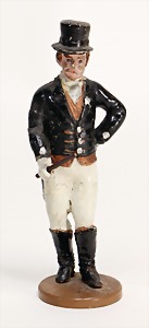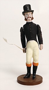 Masse, Zirkusdompteur, auf Holzplatte montiert, 13 cm, bewegl. Arme, Zylinder, Backen- u. Schnauzbart, ein wenig Krakelee-Bildung an den Armen