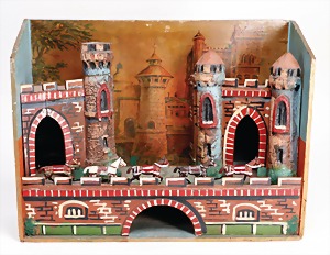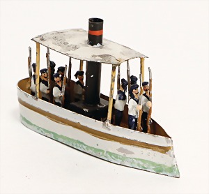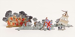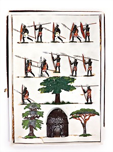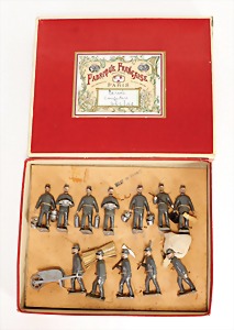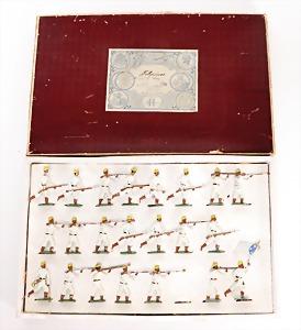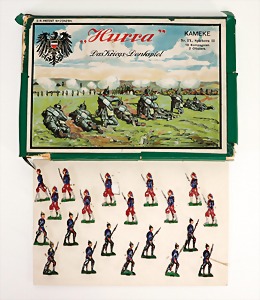 Hurra Das Kriegs Denkspiel, Kameke Nr. IX, Spichern II, 18 Kompanien, 2 Offiziere, Brettspiel, mit 20 Zinn-Kompositionsfiguren, halbplastisch, im Orig.-Kart., ohne Anleitung, Kart. am Rand getaped