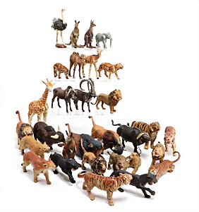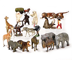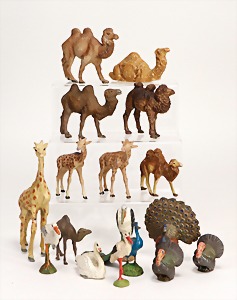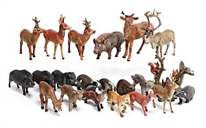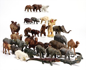 29-tlg., Masse-Figuren, Wildtiere, meist gr. Serie, einige Teile kl. Serie, Krokodile, Bären, Nilpferd, Elefanten, Nashorn, Kamel u. Dromedar, meist Zust. 2
