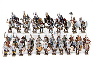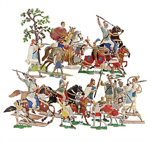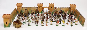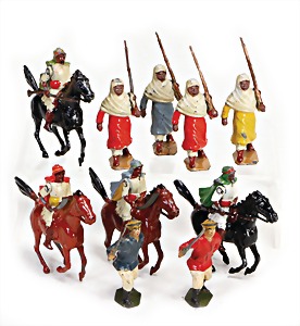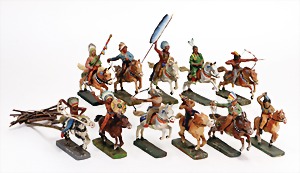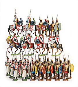 18 Teile Sarazenen, 6 Kreuzritter zu Pferd, 1 Reiter fehlt, 8 Kreuzritter stehend, meist Zust. 2, passend zu 5,5 cm, Kompositionsfiguren, meist Zust. 2