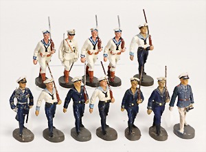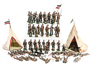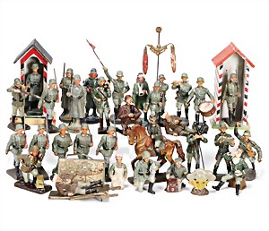 ca. 40 Teile Elastolin, Lineol, Leyla u. andere, 2. Weltkrieg, Masse, meist 7/7,5 cm, meist Zust. 3, einige beschädigt, marschierend, kämpfend