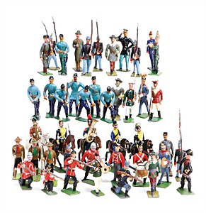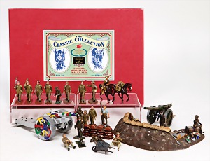 Konv. neuere Figuren, CGB, Frankreich, Tank, Classic Collection, Gussfguren, im Orig.-Kart., dazu einige Musiker in Gardeuniform, einige dänische Figuren