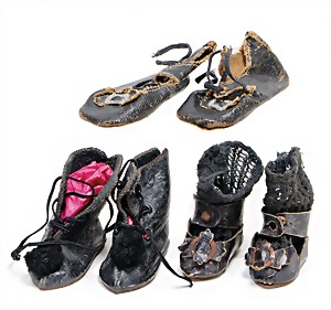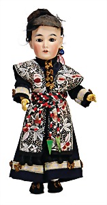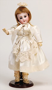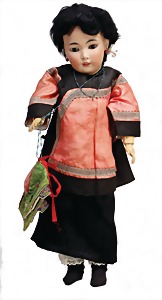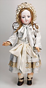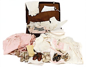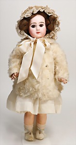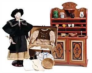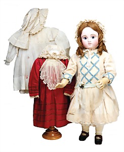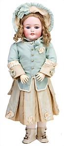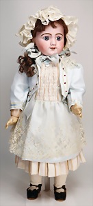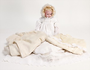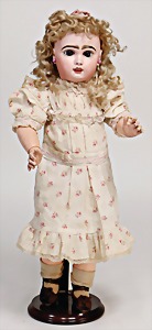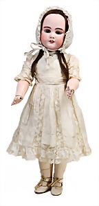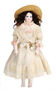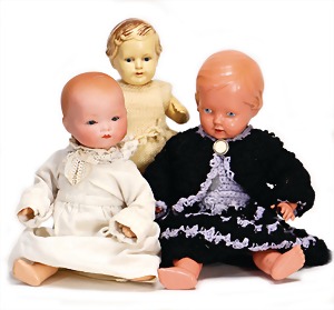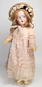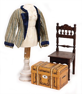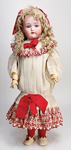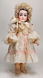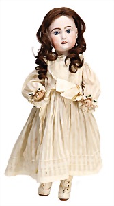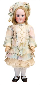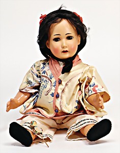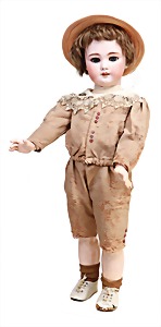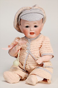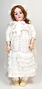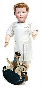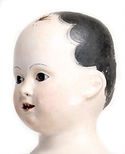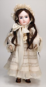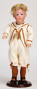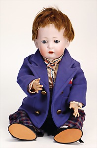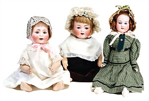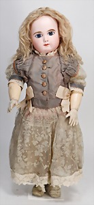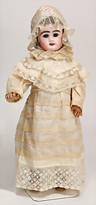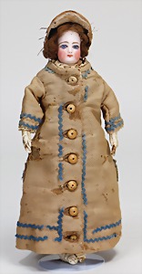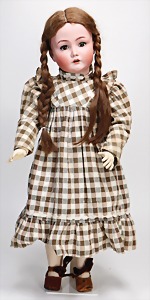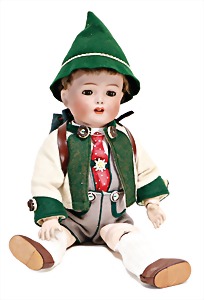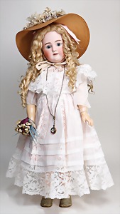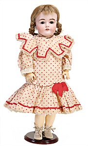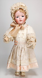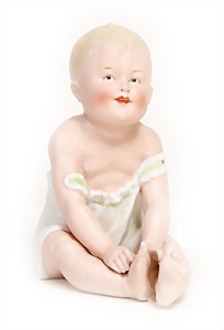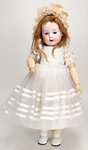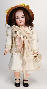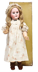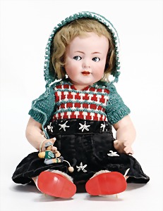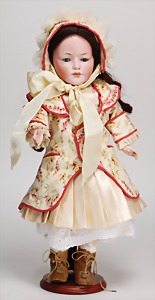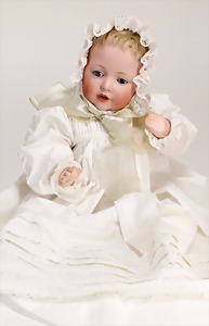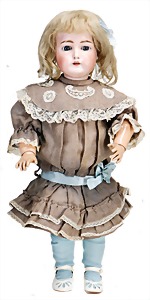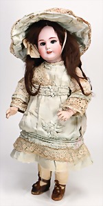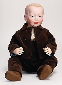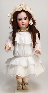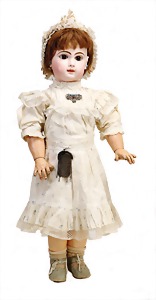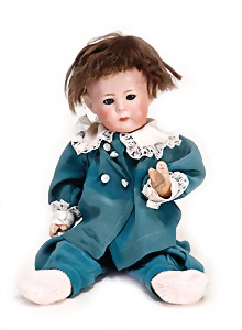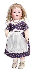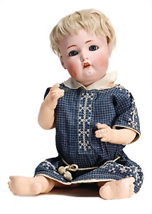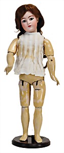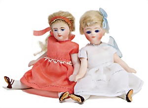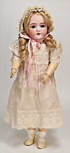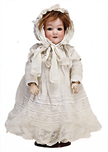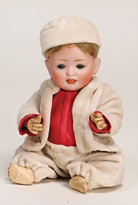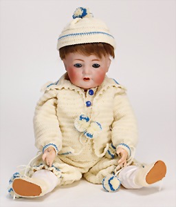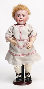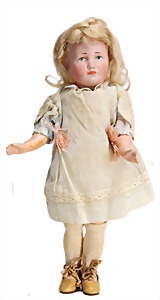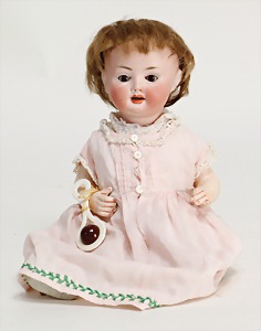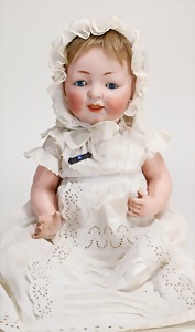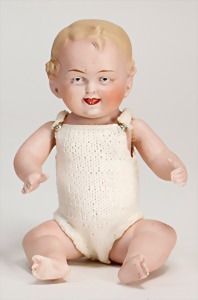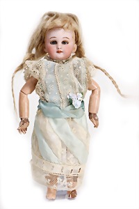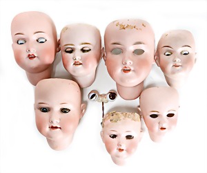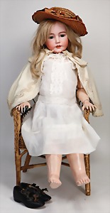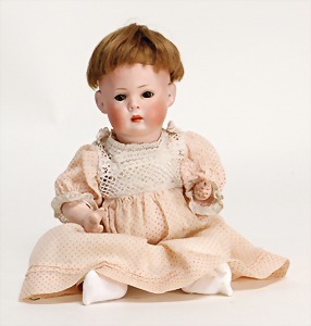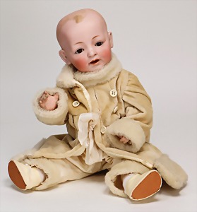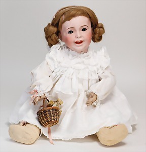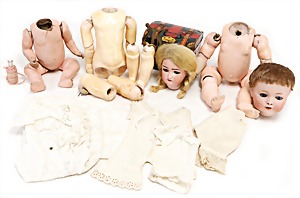 Fundkiste, Franz Schmidt & CO. 1295, Charakterpuppe, 35 cm, Echthaarperücke, blaue Schlafaugen, off. Mund, Zähne u. Zunge, Toddlerkörper bespielt, alte Klebestelle am Hinterkopf, 1 Stück Scherbe fehlt, Körper in Teilen zerlegt, 1 Biskuitporzellankopf-Puppe, Simon & Halbig , braune Schlafaugen, off. Mund, keine Zähne, alte Mohairperücke, in Teilen zerlegt, dazu 1 Babykörper, Dachbodenfund, bitte besichtigen