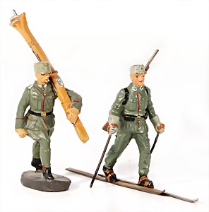 2. Weltkrieg, 7,5 cm, Figuren, Still Gestanden, 1 Musiker, 1 Dirigent mit bewegl. Arm, 1 Wärter-Haus mit Wärter, Zust. 2-3
