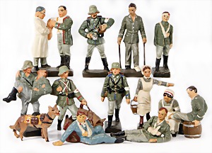 Masse, 7,5 cm, 2. Weltkrieg, Sanitäter, Verwundete und –Ärzte, 11-tlg., dazu 1 Hund, meist Zust. 2-3