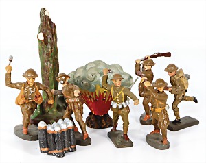 6-tlg., Engländer, Masse, 75,5 cm, 2. Weltkrieg, 1 Baum, 1 Granatfeuer, Granatstapel, Zust. 2-3