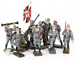 Konv. 10-tlg., 2. Weltkrieg, 7,5 cm, Masse, Luftwaffe, Fahnenträger, marschierend, Mann mit Entfernungsmesser, Mann mit Fernglas, Mann am Flakgeschütz, meist Zust. 2-3
