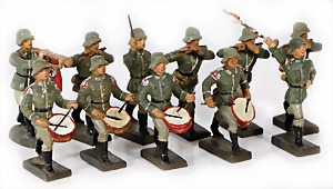 3-tlg., Musiker, Still Gestanden, Trommler, Paukenschläger, 2. Weltkrieg, 7,5 cm, meist Zust.3, 1 Figur 2-3