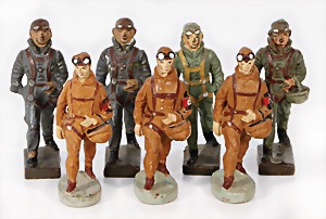6-tlg., Mann mit Munitions-Kisten und Pistole, am Boden liegend, selten, Entfernungsmesser, Mann mit Brieftaube, Mann mit Flammenwerfer, dazu 2 Messgeräte, meist Zust. 2