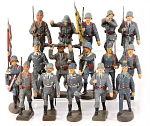 Masse, 2. Weltkrieg, 7,5 cm, Luftwaffe, 16 Teile, marschierend, darunter 2 Fahnenträger, mit Blechfahne, meist Zust. 2