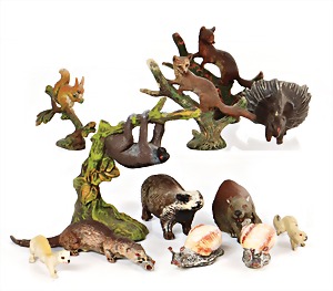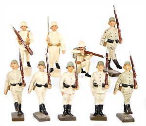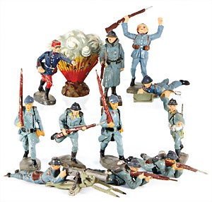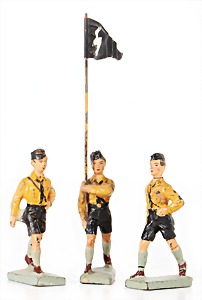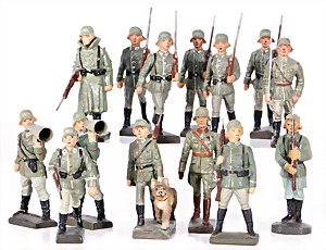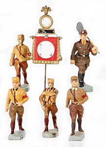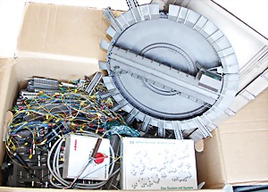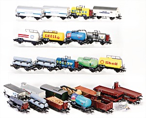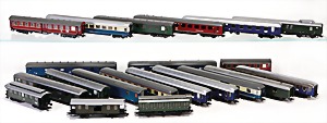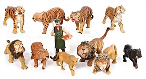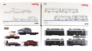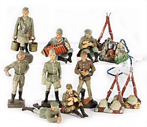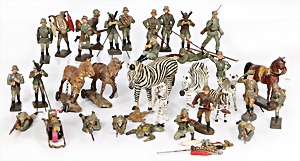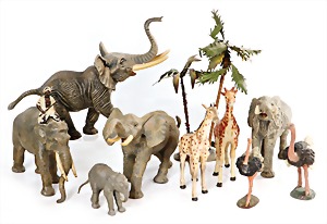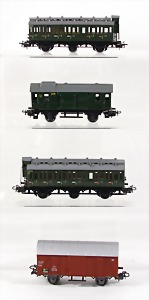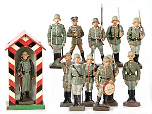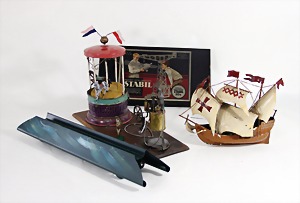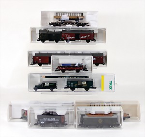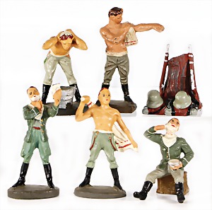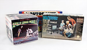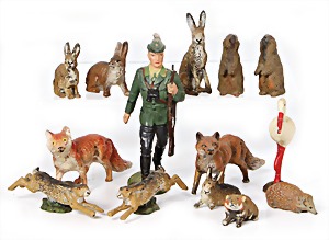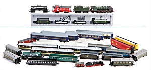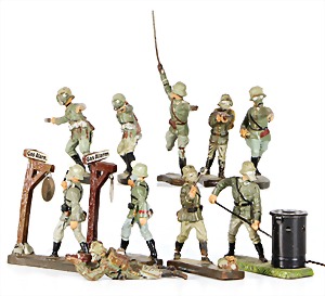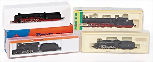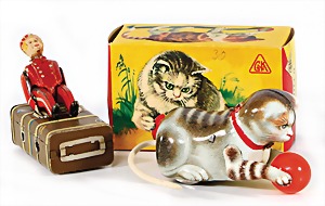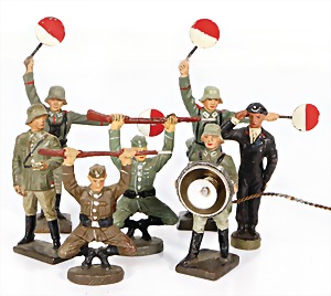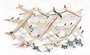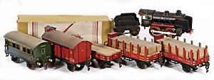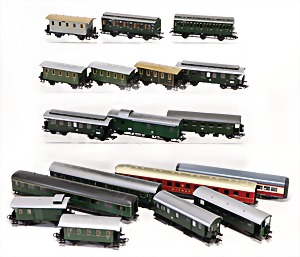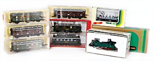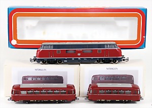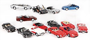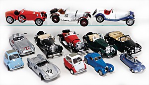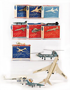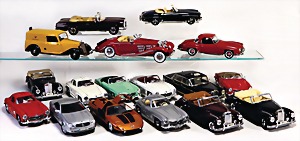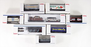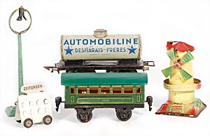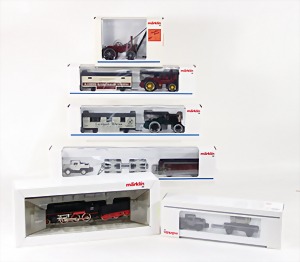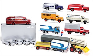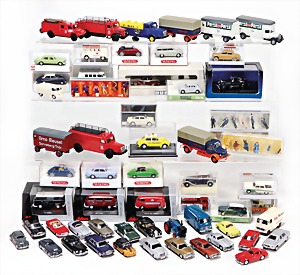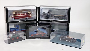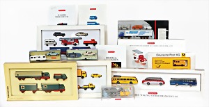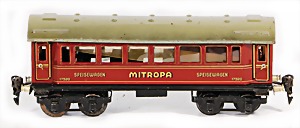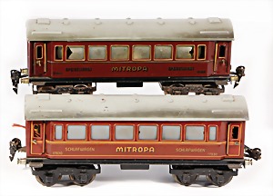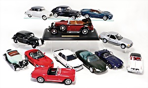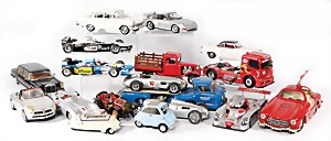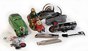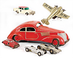 Stromlinien-Limousine, 28 cm, Blech, lithogr., ohne Antrieb, bespielt, 1 Flugzeug, Blech, Uhrwerk intakt, YOU541, 2 Märklin Rennwagen, Autounion, 1x mit Bodenplatte, 1x ohne Bodenplatte, 1 Limousine Blech, Uhrwerkantrieb intakt, stärker bespielt, 1 Mercedes Heckflosse, Micro Raser 1038, Uhrwerk intakt, bespielt