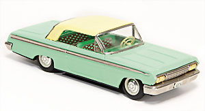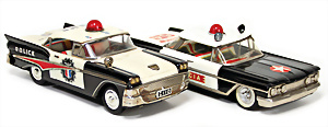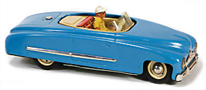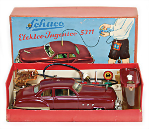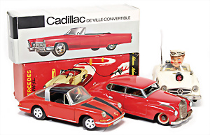 Konv. 3-teilig, GAMA, Polizei-Auto, Mercedes Benz, 190 SL, Blech, 23 cm, bespielt, Batteriefach angerostet, SCHUCO Mercedes 190 SL, 2095, ohne Antrieb, bespielt. im Orig.-Kart,, Cadillac de Ville Convertible, bespielt, im Orig.-Kart, Jotenesse, Mercedes 300, bespielt ohne Antrieb, SCHUCO Porsche Targa, bespielt, 1 Scheinwerfer fehlt, hintere Plexiglas-Scheibe kl. Ausbruch, Uhrwerk intakt