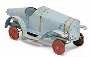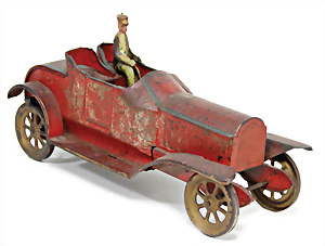 Rennwagen, ca. 1920, Uhrwerk am Boden nachtr. befestigt, bespielt, Lackfehler, Lackierung orig,