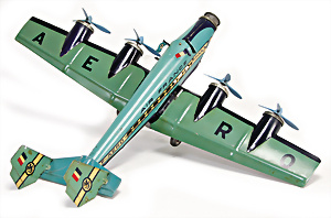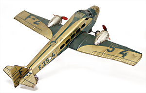 F-Aero, 4-motoriges Propeller-Flugzeug, Blech lithogr., Antrieb klemmt, elektr. betriebener Frontscheinwerfer, Höhen- u. Seitenruder liegt lose bei