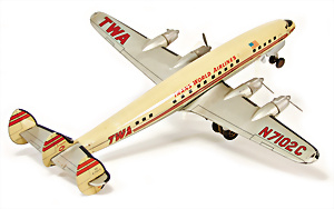 Super-Constellation Trans World Airlines TWA, 47 cm, Blech lithogr., Friktionsantrieb, 3 Flügel weggebrochen, bespielt