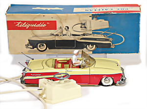 Pré Catelan Voiture Téléguidée électrique, Cabriolet, Blech lithogr., Kabelsteuerung, 26 cm, Verformungen an den Rädern, sonst leicht bespielt gut, im Orig.-Kart.