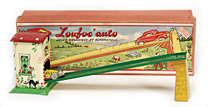 Louboc‘ Autojouets, Blech lithogr., Uhrwerk intakt, im Orig.-Kart. mit bunt lithogr. Deckbild, guter Zust.