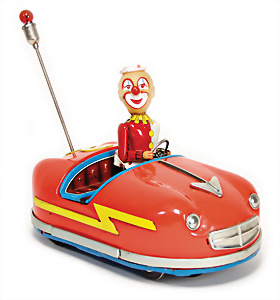 Clown, Auto-Scooter, Blech, Batterie-Antrieb, Japan, 25 cm, leicht bespielt, guter Zust., techn. nicht geprüft