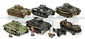 Konv. Tanks, GAMA u.a., teilw. Uhrwerk intakt, teilw. Uhrwerk defekt, 1 ARNOLD Jeep intakt, klemmt jedoch ein wenig, bespielt mit Figuren