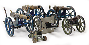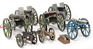 Konv. 7 Teile, Geschütze, untersch. Hersteller, darunter auch MÄRKLIN, teilw. nicht ganz kompl., in alter Spanschachtel, bitte besichtigen