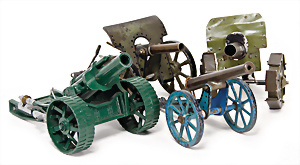 Geschütz, Verschluss nicht kompl., Durchm. der Räder 6 cm, dazu 1 MÄRKLIN Geschütz, nicht kompl., 1 Geschütz, einfach, 1 Geschütz Briten (später)