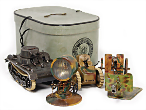 Tank, Blech lithogr., 22,5 cm, Starthebel fehlt, Uhrwerk nicht geprüft, Kleinteile fehlen, bespielt