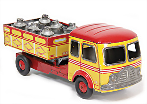 C.R. Made in France, Milchwagen, 37 cm, Blech lithogr., Friktionsantrieb, über den Milchkannen fehlt möglicherweise eine Plane, bespielt, gut
