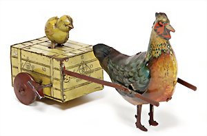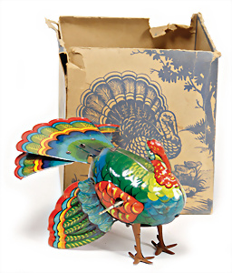 Truthahn, Blech lithogr., H: 14 cm, Uhrwerk intakt, im Orig.-Kart., mit Orig.-Schlüssel, Deckel am Kart. fehlt
