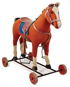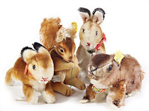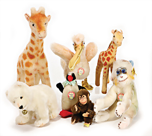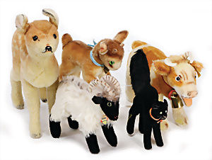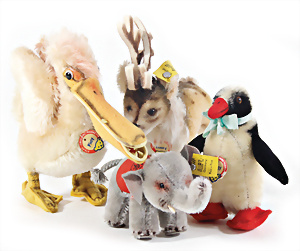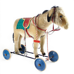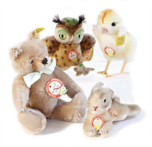 2 Teile, 1 x Ferdy, mit Knopf, Schild und Fahne, Artikel Nummer: 1420/12, Höhe 18 cm, Breite 18 cm, dazu 1 x Pferd, mit Knopf, Schild und Fahne, Artikel Nummer: 3750/12, neuw. Zust.