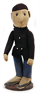 Minky Zotty, grau, schöne Farben, Karpork Füllung, mit Brustschild, ohne Knopf u. Fahne, neuw. Zust., 27 cm
