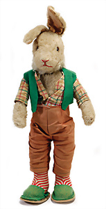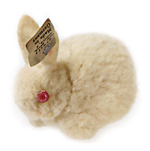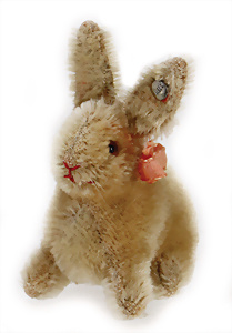 Hase, sitzend, Kurzmohair-Einsatz im Gesicht, drehbarer Kopf, Glasaugen, 20 cm, etw. eingestaubt