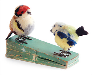 Eule, Wittie, mit Knopf, Schild und Fahne, Art.Nummer: 2620/10, sehr schöne Fraben, grüner Farbverlauf auf Füßen und Augen deutlich sichtbar, 10 cm, neuw. Zust.