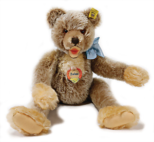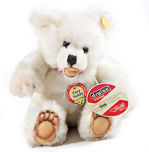 Teddy, Cosy, mit Knopf, Schild und Fahne, Artikel Nummer: 4762/20, Karpok Füllung, 17 cm, sehr guter Zust.