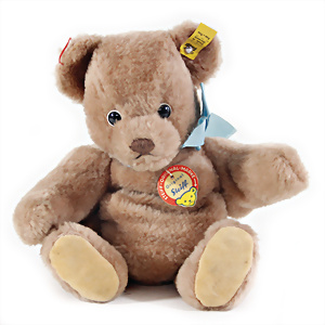 Ticky, Yes / No Teddy, Filztatzen in gutem Zust. Füße mit Pappeinlage, linker Fuß etwas verschlissen, Glasaugen, grau/braun, 40 cm, vereinzelt etwas Mohairverlustm, rechter Arm Stoff etwas verschlissen, Musikspielwerk intakt