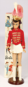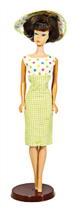 Bubble-Cut, brunette, Straight-Leg, in Outfit Career-Girl, Nr. 954, nicht kompl., Open-Toe Pumps gerissen