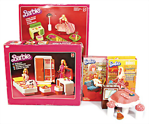 Konv. Barbie-Kleidung, teils nicht kompl., darunter Night Negligee, Nr. 965, Morgenmantel, Sleeping Pretty, Nr. 1936, Uhr ergänzt, Slumber Party, Nr. 1642, Kleinteile fehlen, u.a., alles bespielt