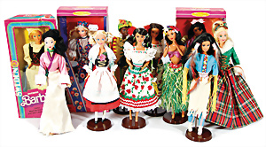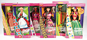 Konv. 6 90er Jahre Barbies, „Dolls of the world collection“, alle im Orig.-Kart., unbespielt