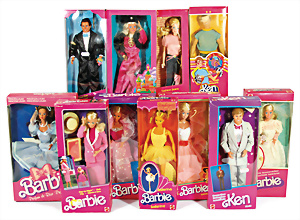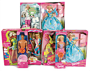 Konv. 5x Barbie, 3x TNT, stärker bespielt, 2x Einrissstelle am Hals, dazu 2x Fashion-Queen, 1x Verfärbungen an den Ohren, alle in Orig.-Outfit, nicht kompl.