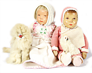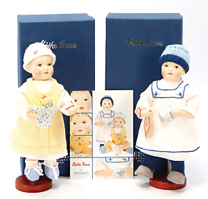 Konv. Puppen, 2x Däumelinchen, 25 cm, 2 Vinyl-Puppen, 1 Künstler-Puppe