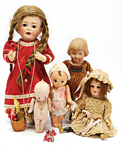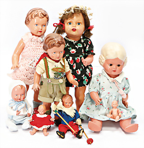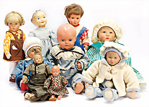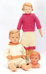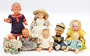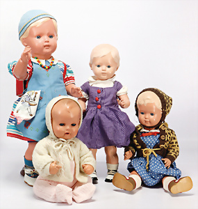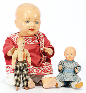 Konv. Puppen, KÖNIG & WERNICKE, Kunstoff, Bindekopf, Papiermaché, Masse-Kopf Puppe mit Stoffkörper, KÄTHE KRUSE Eierkopf, Kopf übermalt, Krakeleebildung, HEUBACH Junge, Biskuit-Kopf, Masse-Körper